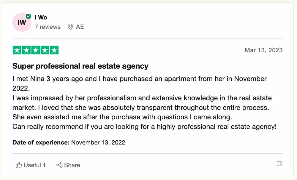 “From the very beginning, Nina was always attentive, responsive and kept us completely informed! She was a total pleasure to work with …”
